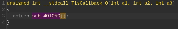 对 sbox 做交叉引用可以找到一个 TLS 回调函数 sub_401050