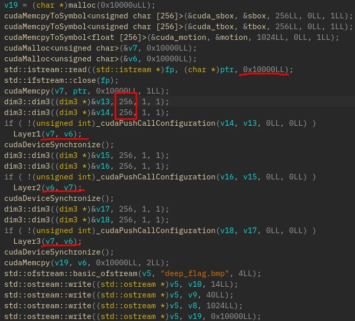 从 IDA 中可以看到该题使用了 CUDA 处理图片的内容