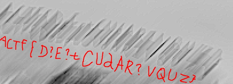 观察到整个图片被向左下的运动拉扯模糊,通过调整 GIMP 的锐化滤镜参数,可以大致看出 flag(自右上向左下观察)