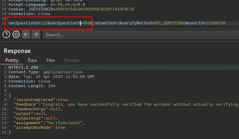再将两个参数改成 secQuestion2 和 secQuestion3,成功