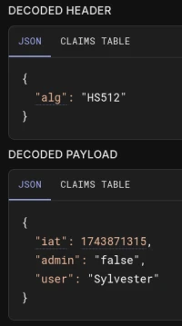 eyJhbGciOiJub25lIn0.eyJpYXQiOjE3NDM4NzEzMTUsImFkbWluIjoidHJ1ZSIsInVzZXIiOiJTeWx2ZXN0ZXIifQ.