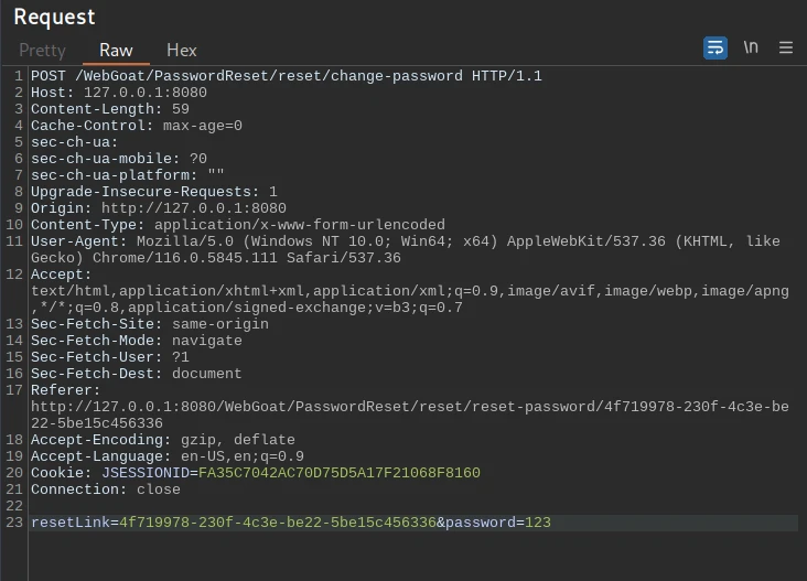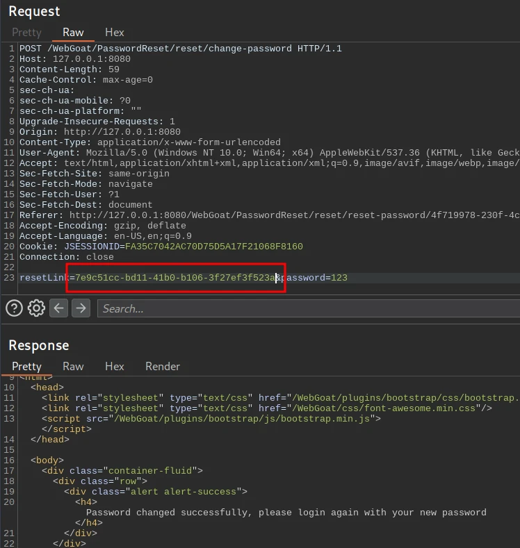 得到随机码之后向 /WebGoat/PasswordReset/reset/change-password 发送请求即可